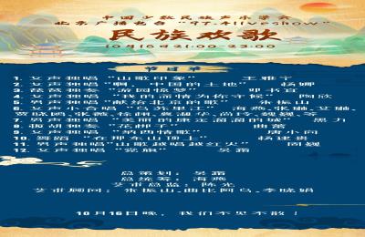 2022年10月16日晚21:00—23:00,中国少数民族声乐学会将会在北京广播电台“974LiveShow”举行一场线上音乐会。“974LiveShow”是从2018年开播的现场表演节目,时间是在