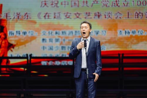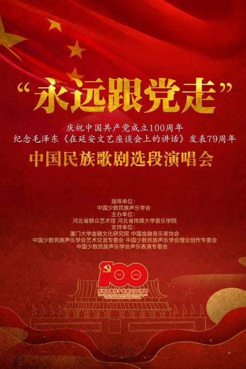 为纪念中国共产党成立百年和纪念毛泽东同志《在延安文艺座谈会上的讲话》发表79周年,河北省群众艺术馆、河北省传媒大学音乐学院联合主办了这场主题音乐会。中国少数民族声乐学会对本场纪念演出给予了大力支持,国家一级演员,著名歌唱家李元华、中国少数民族声乐学会会长,著名花腔女高音歌唱家吴霜、中国少数民族声乐学会副会长,中央戏剧学院教授朱振山、中国少数民族声乐学会副会长,著名作曲家陈光、中国少数民族声乐学会常务副会长兼秘书长海燕、中国金融音乐家协会主席叶江篱、国家一级演员,国家大剧院男高音歌唱家金郑建、中国少数民族声乐学会副会长,中央民族大学教授黑力特意从北京赶来指导。