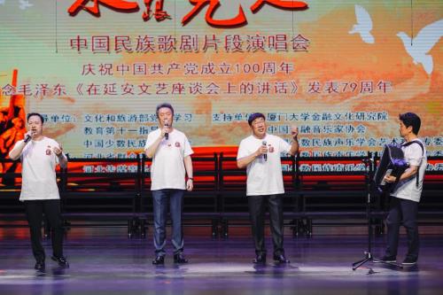 演唱会最后,演员与观众共同高唱《没有共产党就没有新中国》。合唱由中国少数民族声乐学会秘书长海燕担任指挥。澎湃的歌声里,有老艺术家们的教诲与嘱托,有新一代青年们的信念与承诺,有永远跟着共产党实现民族伟大复兴的意志与决心。