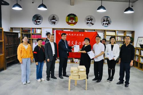 在晚会开始之前中国少数民族声乐学会向娄烦县捐赠合唱声乐书籍;海燕秘书长、杨鹤城主任与娄烦县黄庆山副县长共同探讨乡村文化建设。