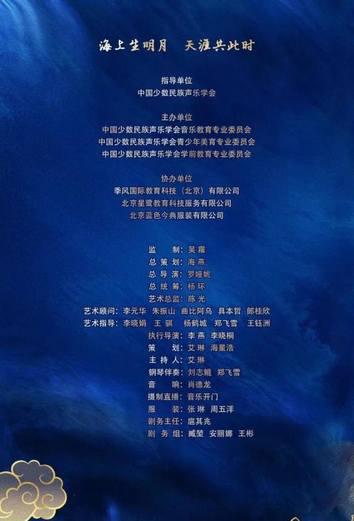 月圆京城,情系中华。9月12日晚,在中国少数民族声乐学会指导下,由中国少数民族声乐学会音乐教育专业委员会、中国少数民族声乐学会青少年美育专业委员会、中国少数民族声乐学会学前教育专业委员会主办,季风国际教育科技(北京)有限公司、北京星鹭教育科技服务有限公司、北京蓝色今典服装有限公司协办的《海峡两岸一家亲中秋联欢晚会》圆满成功举办!